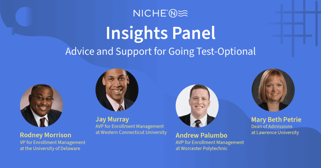 June 24, 2020 – Panelist – Insights Panel: Advice and Support for Going Test-Optional. Panel hosted by Niche for enrollment leaders considering or currently transitioning to test-optional admissions. [Webinar]